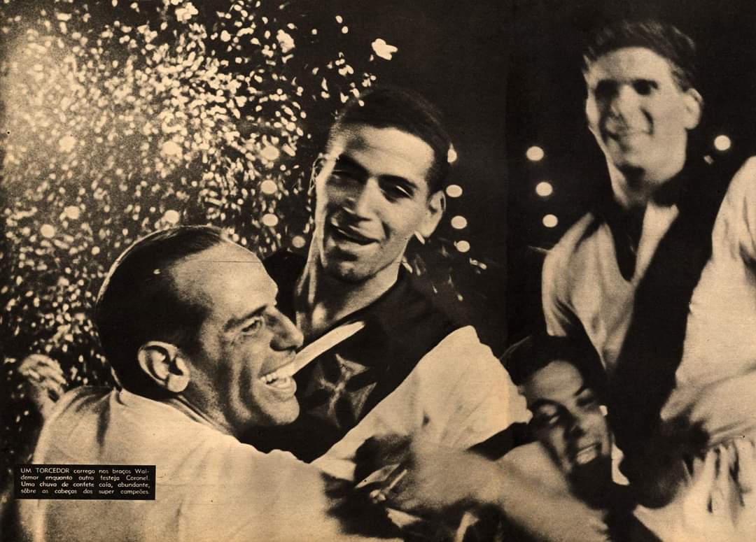 A comemoração de Waldemar e Coronel nos braços da torcida em pleno gramado do antigo Maracanã!