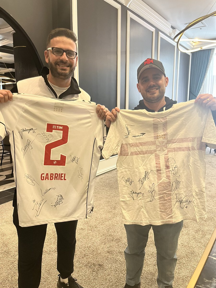 Gabriel e Rodrigo vieram de Austin, no Texas, para assistirem ao jogo contra o River Plate. Já conseguiram o encontro com os jogadores. #gevas