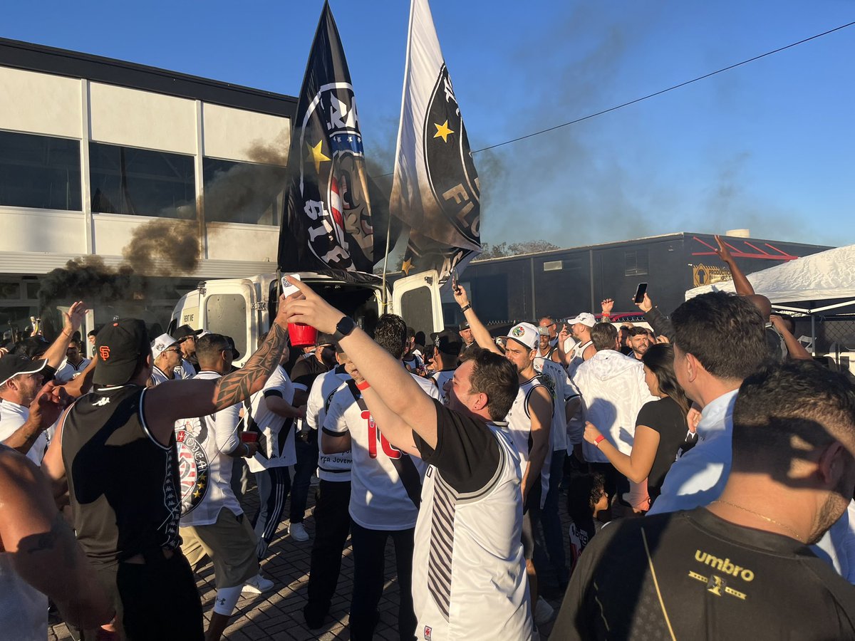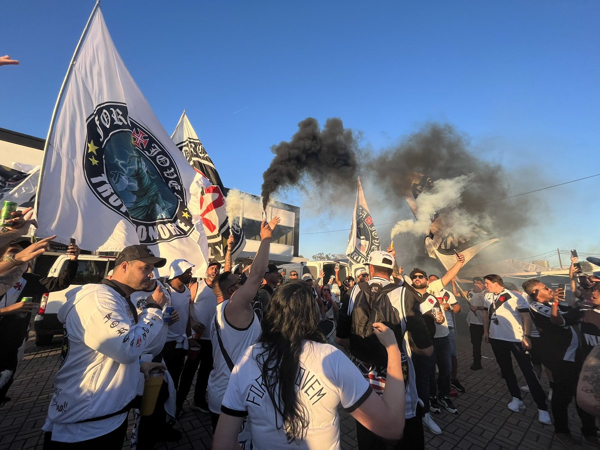 Torcedores do Vasco vieram de várias partes dos EUA para assistirem ao jogo. Há concentração com direito a bandeiras, cantos, churrasco e cerveja. O Brasil respira. #gevas