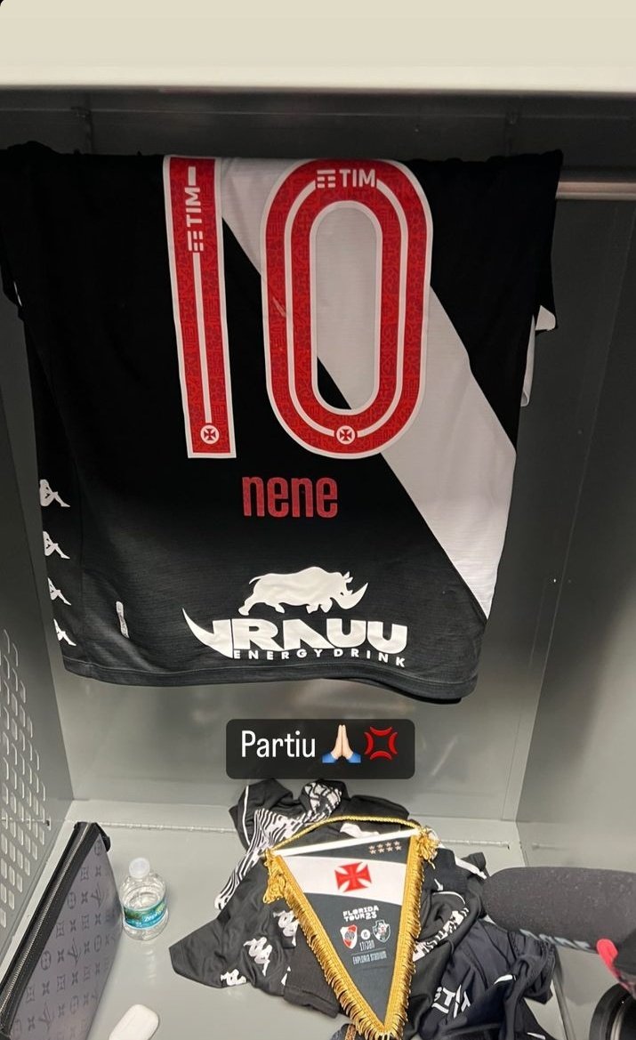 Linda flâmula do Vasco para a tradicional troca com o River Plate antes do amistoso. Detalhe mostrado pelo Nenê em seu story. Ele é o capitão da equipe hoje.