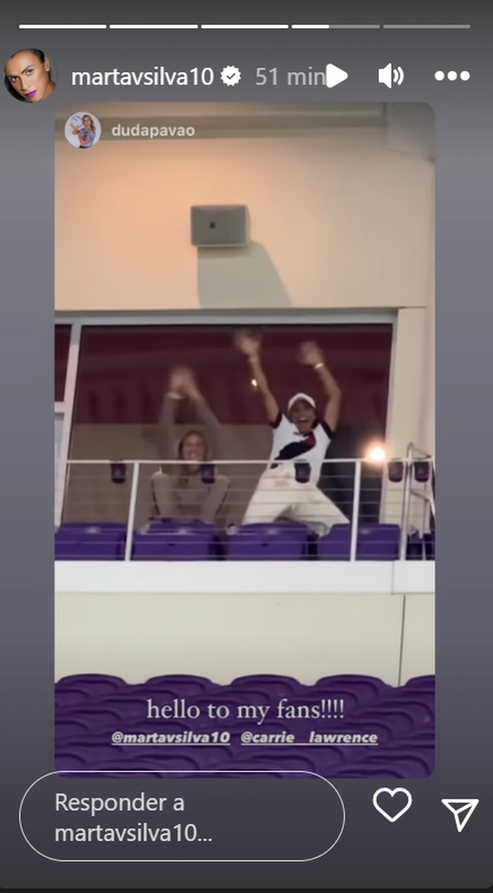 Marta atualmente defende o Orlando Pride, enquanto Talles está no New York City. Formada em São Januário, a Rainha assiste ao jogo vestindo uma camisa do Vasco e ao lado da companheira, a também jogadora Carrie Lawrence.