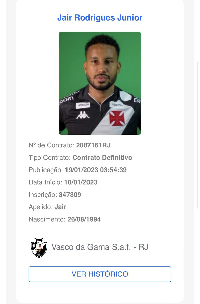 BIDOU! Jair foi registrado oficialmente pelo Vasco no BID.