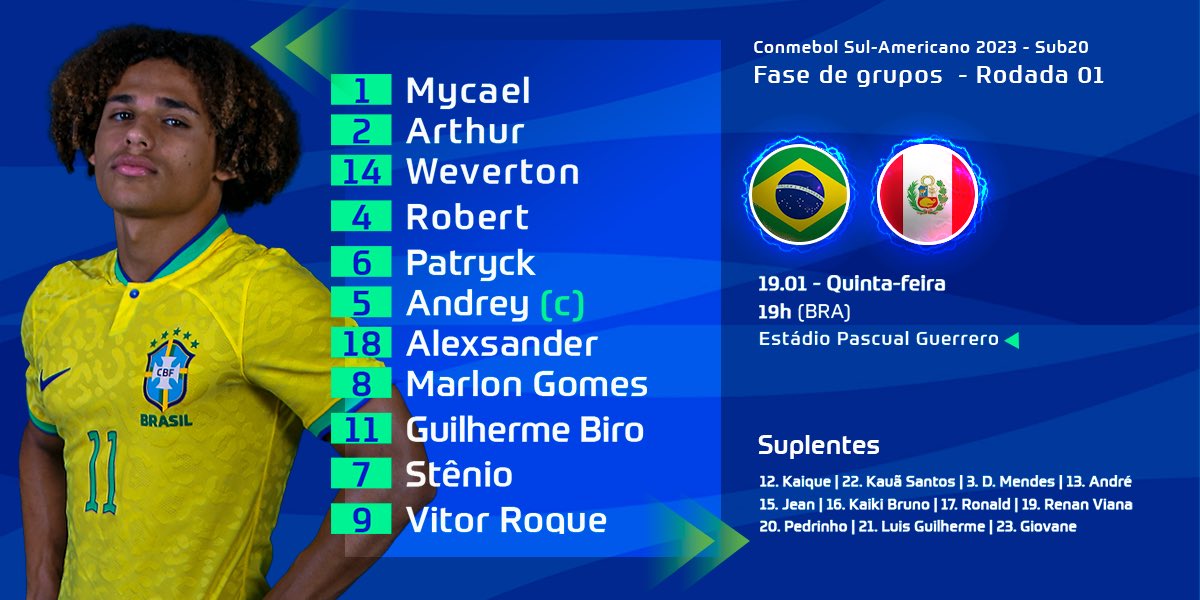 A Seleção Brasileira está escalada para a estreia no CONMEBOL Sul-Americano Sub-20 2023.