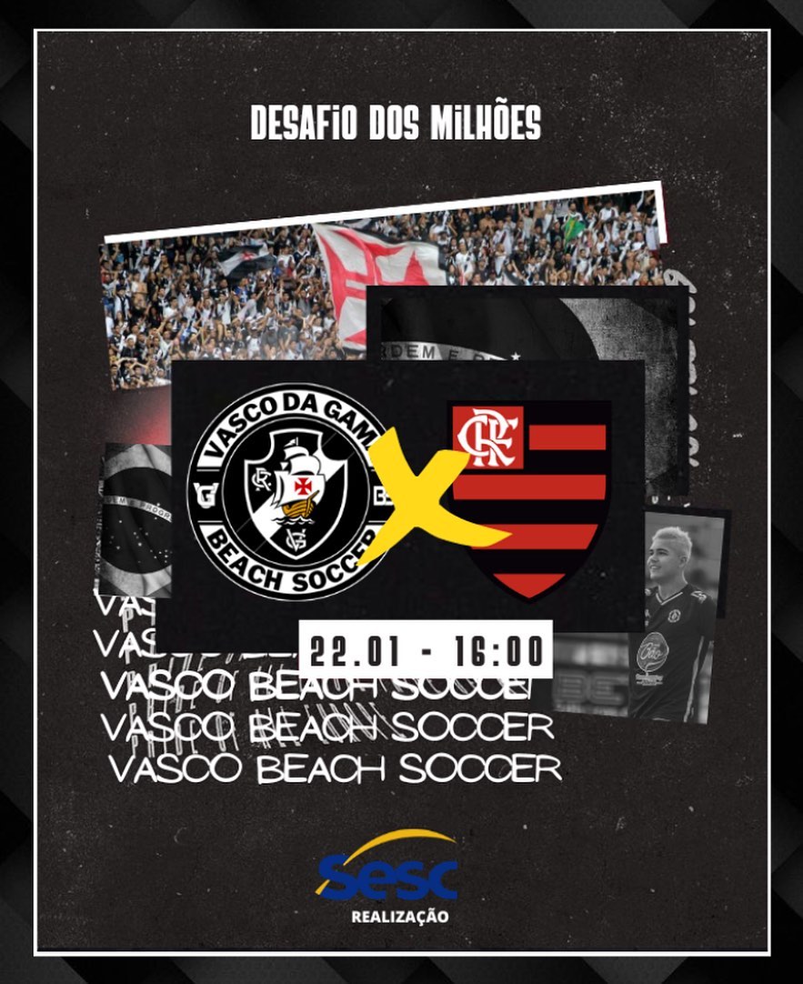 Vascaínos, no próximo dia 22.01 (domingo) as 16:00 nós teremos pela frente o primeiro compromisso do ano, um amistoso contra o Flamengo, em Barra de São João, Casimiro de Abreu, no evento de Verão, realizado pelo @sescnovafriburgo 😁