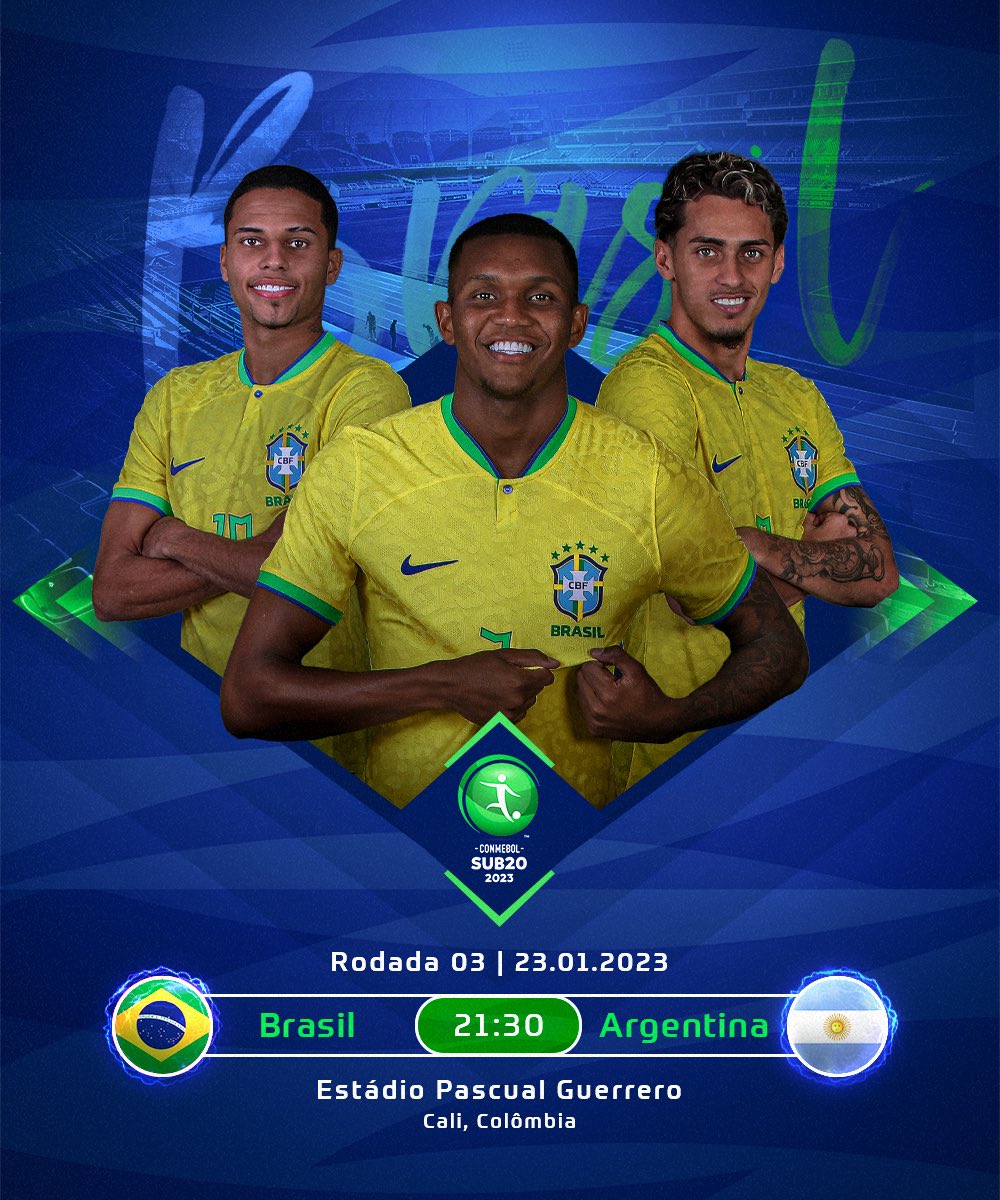 Nesta segunda (23), às 21h30, a Seleção Brasileira entra em campo pelo Sul-Americano Sub-20 contra a Argentina.