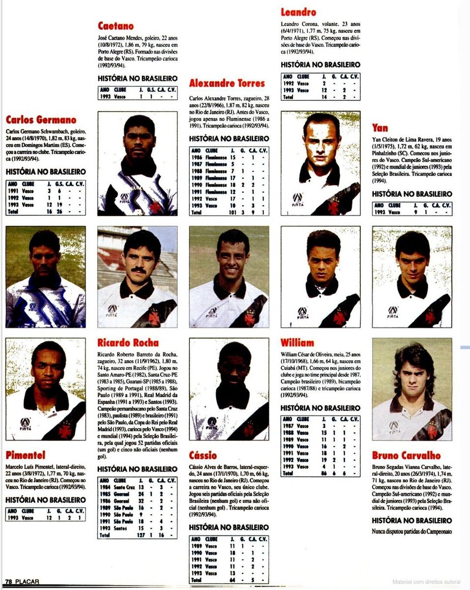 Elenco do Vasco para o Brasileirão de 1994, Revista Placar.