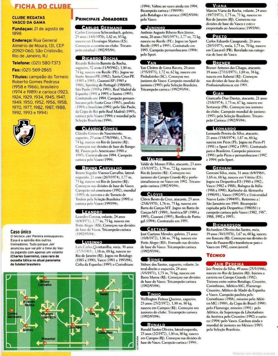 Ontem publiquei o elenco de 1994 do Vasco para o Brasileirão, segundo a Revista Placar.