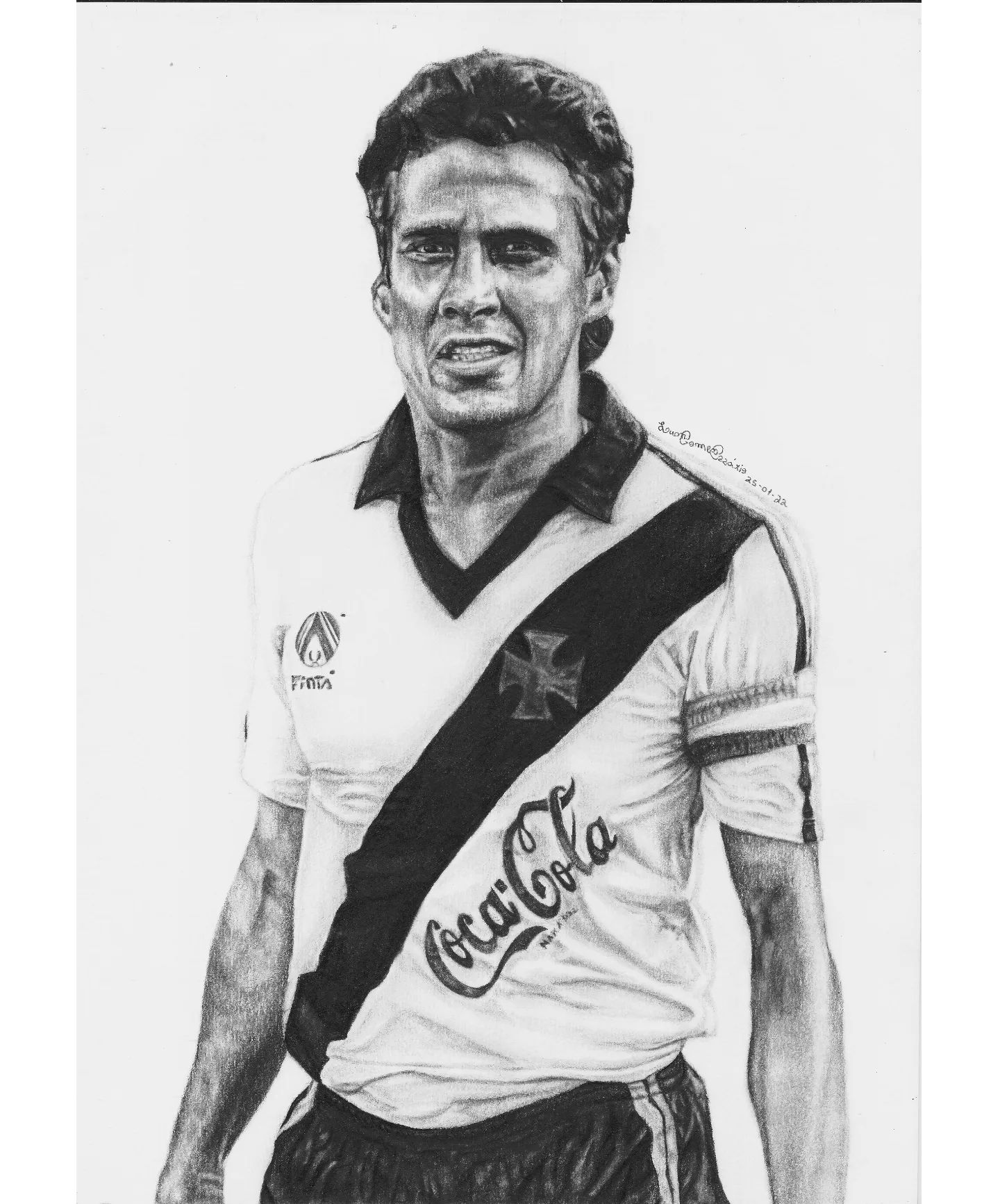 Fiz este desenho em homenagem ao maior de todos, nosso eterno @rdinamite10 ! Este desenho é uma releitura de um que fiz em 2020 (arrasta pro lado pra ver a evolução). Fico muito feliz em ver o quanto evolui, e escolhi refazer esta foto pois o Bob merece o melhor dos resultados. Uma das maiores felicidades da minha vida foi ele ter visto e compartilhado o primeiro desenho. Chorei de felicidade! Infelizmente ele se foi, mas o legado dele será eterno. Simplesmente o MAIOR da história do @vascodagama . 💢🖤