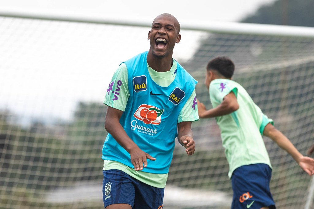 Os carequinhas Matheus e Rayan se apresentaram na Granja Comary, nesta quinta-feira (26), para um período de treinos com a Seleção Brasileira Sub-17.