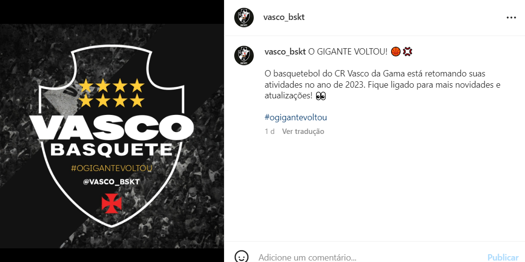 Fonte: Twitter oficial Vasco Basquete, Instagram oficial Vasco Basquete