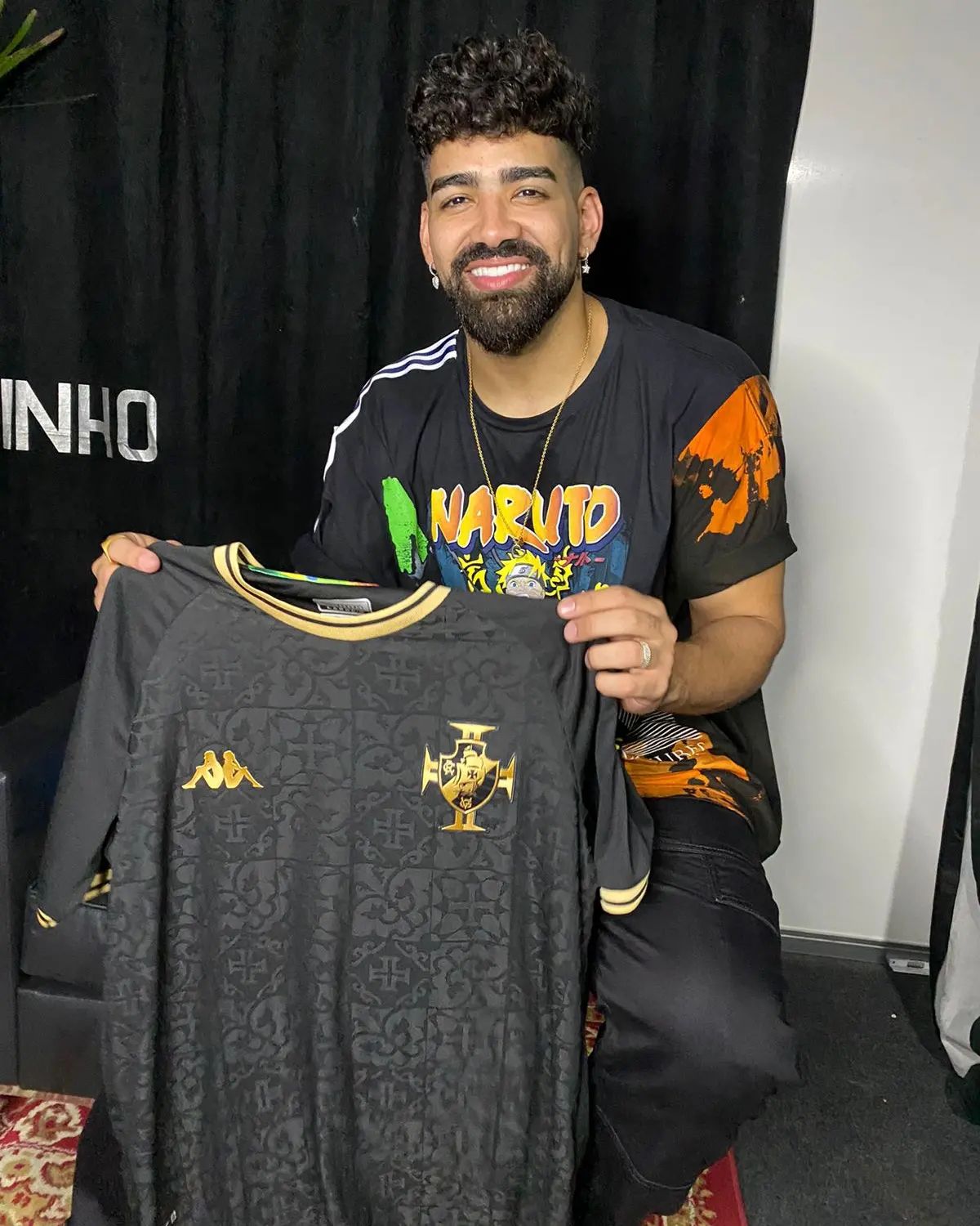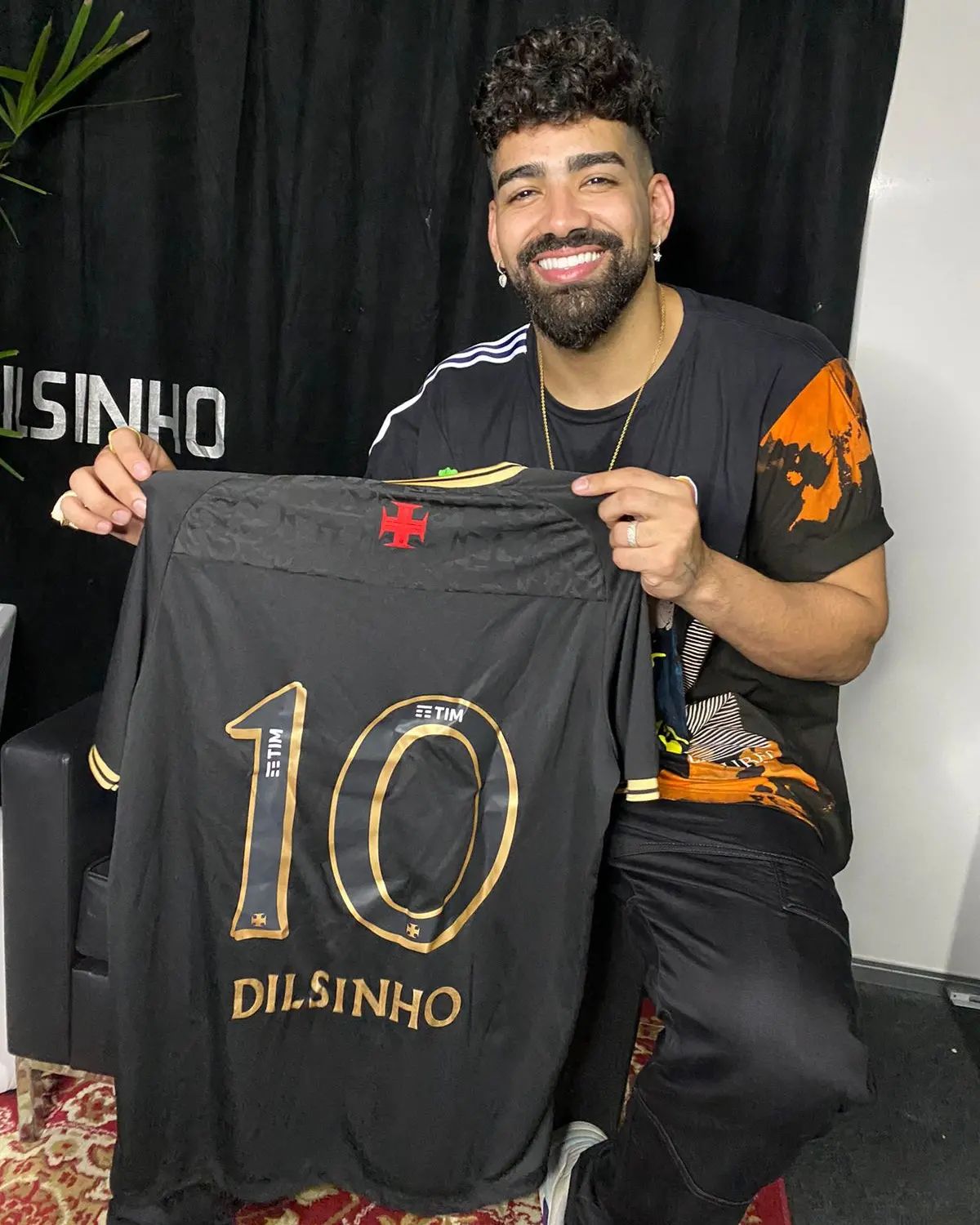 Cantor Dilsinho recebe camisa 3 preta do Vasco