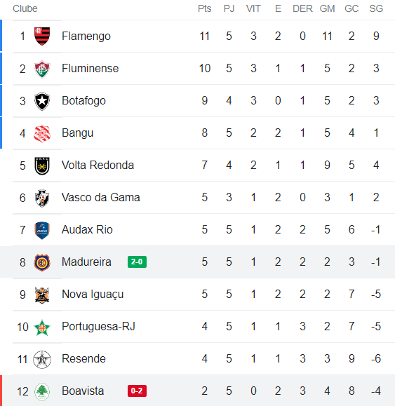 A um jogo do fim da 5ª rodada da Taça Guanabara, o Vasco está em 6º lugar. Como, porém, tem 2 jogos a menos (contra o Volta Redonda nesta 2ª-feira e contra o Botafogo no dia 16/02) do que o líder Flamengo, que tem 11 pontos, o Gigante da Colina teoricamente só depende de si para chegar à liderança, tendo que, para isso, vencer esses dois compromissos e fazer, neles, um saldo de 8 gols. Ao final das 11 rodadas, o primeiro colocado fica com a Taça Guanabara e os quatro melhores avançam às semifinais do Estadual.