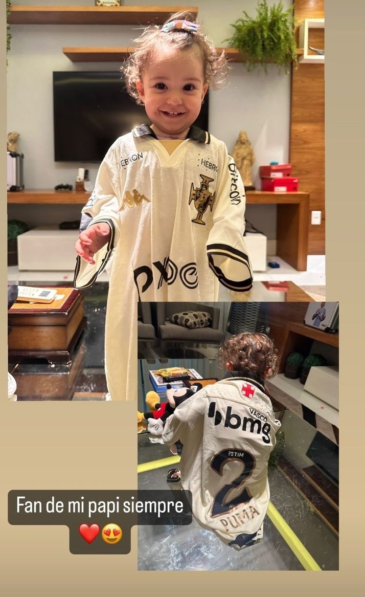 Filha de Puma Rodríguez posa para foto com camisa do Vasco; veja