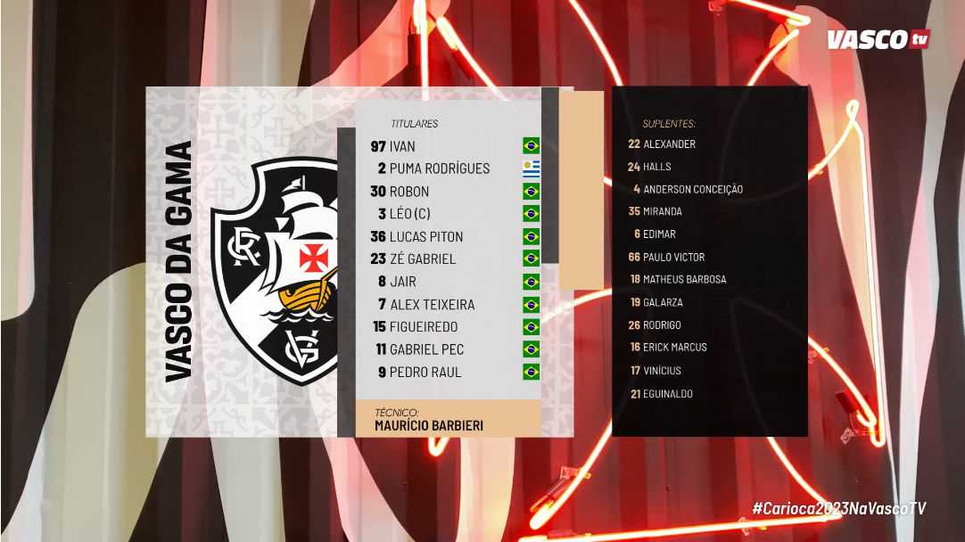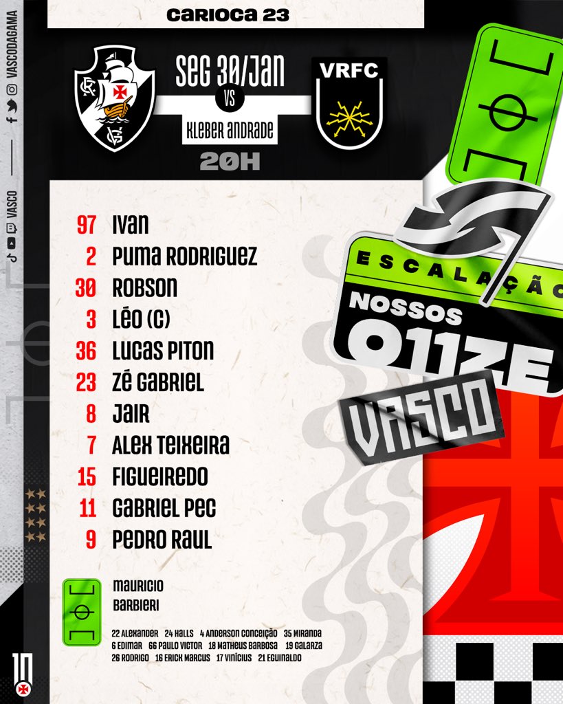 Confira a escalação do Vasco para o jogo contra o Volta Redonda; Jair e Alex Teixeira são as novidades no time titular