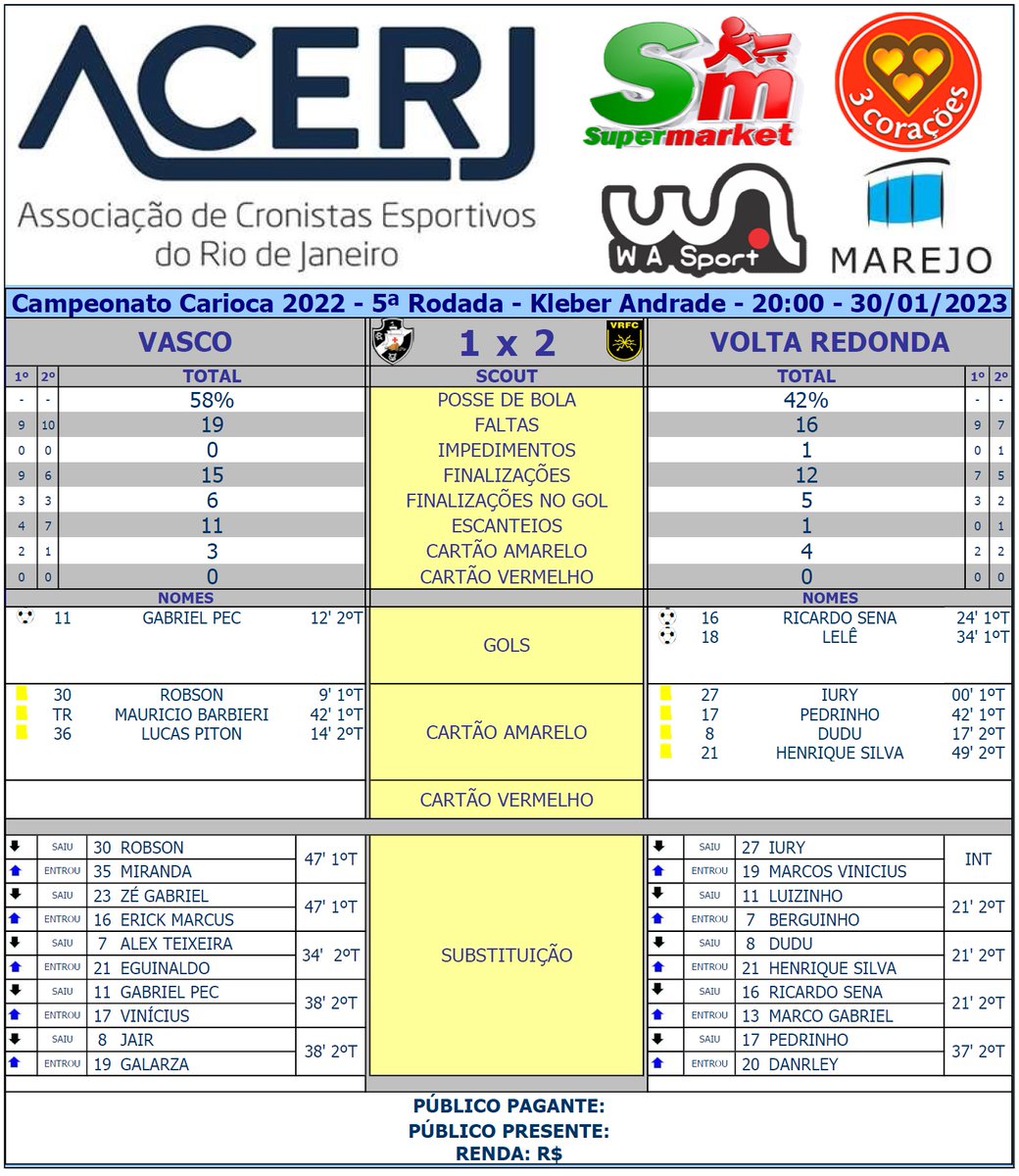 Scout final de Vasco e Volta Redonda pela 5ª Rodada do Campeonato Carioca 2023 no Kleber Andrade #Acerjinforma #Cariocao2023 #VASxVRE #VascodaGama #EuSouVoltaço @VascodaGama @VoltacoFC @Cariocao