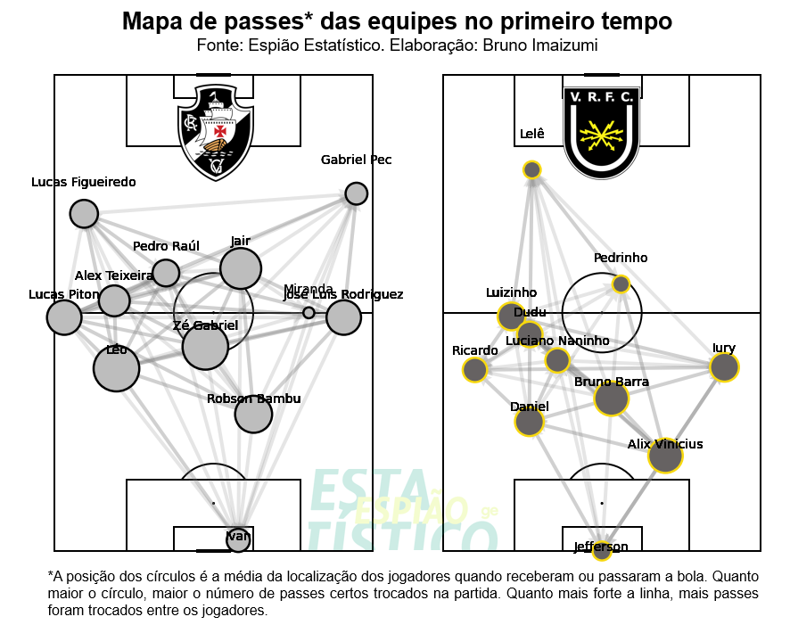 Pelo lado do Vasco, o jogo passou muito pelos pés de Zé Gabriel e Jair. Ficou mais com a bola, mas não conseguiu converter esse domínio em grandes chances