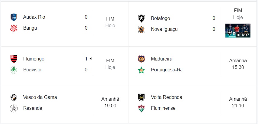 Tres jogos abriram a 6ª rodada da Taça Guanabara nesta 4ª-feira. O Vasco, que enfrenta o Resende nesta 5ª-feira às 19h em São Januário, está na 8ª colocação. O Gigante da Colina tem menos partidas do que os demais participantes, pois seu clássico diante do Botafogo, pela 3ª rodada, foi remarcado para 16/02.