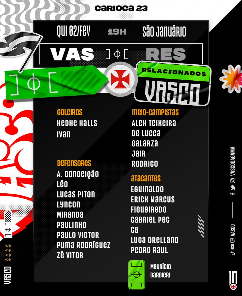 Vasco divulga relacionados para o jogo contra o Resende; Orellano e De Lucca sĂŁo as novidades