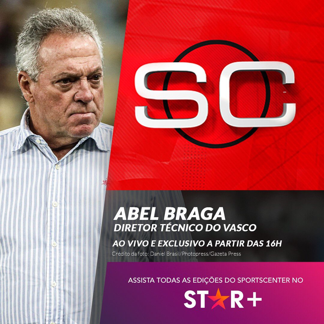 Hoje vai ter entrevista com Abel Braga, diretor técnico do Vasco, no Sportscenter. O programa começa às 16hrs na ESPN e no @StarPlusBR.