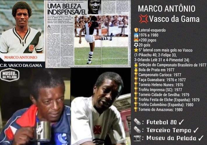 Hoje é aniversário do tricampeão mundial da Copa de 70, o ex-lateral esquerdo Marco Antônio, um dos grandes na posição que jogou com a camisa cruzmaltina. Formou defesa vascaina conhecida como "Barreira do Inferno" composta com Mazaropi, Orando Lelé, Abel Braga e Geraldo.🎂🎉💢👏🏻