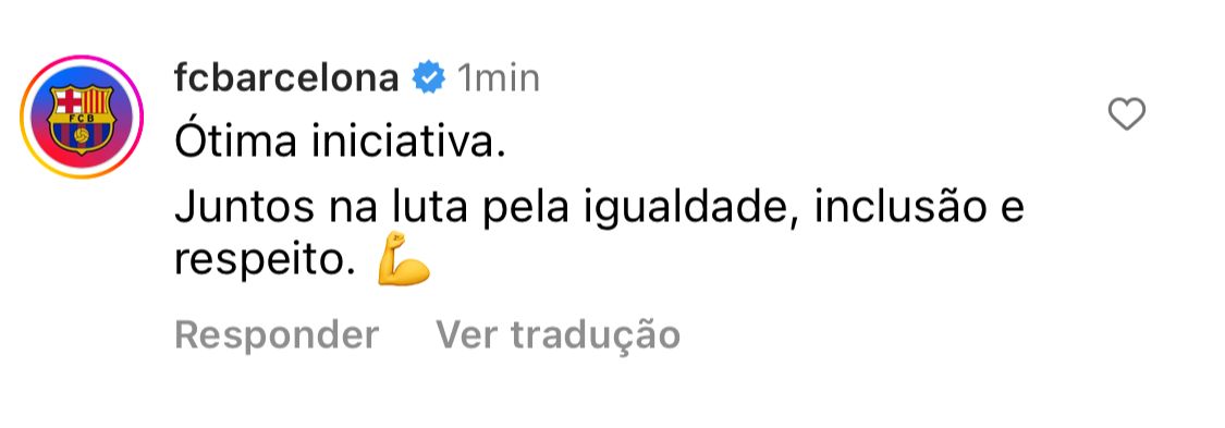 Agora, a conta oficial do Barcelona. Palmeiras, Ceará, Bahia e Coritiba também comentaram.