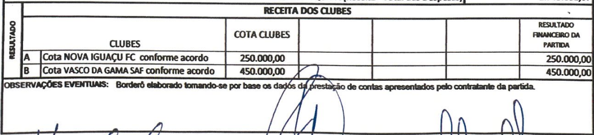 O Vasco recebeu uma cota de R$ 450 mil para enfrentar o Nova Iguaçu em Brasília. A informação é do boletim financeiro da partida.