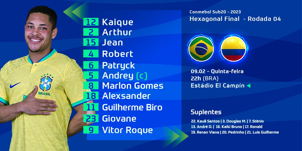 O treinador Ramon Menezes escalou os titulares para o duelo contra a Colômbia, às 22h, pelo Sul-Americano Sub-20.