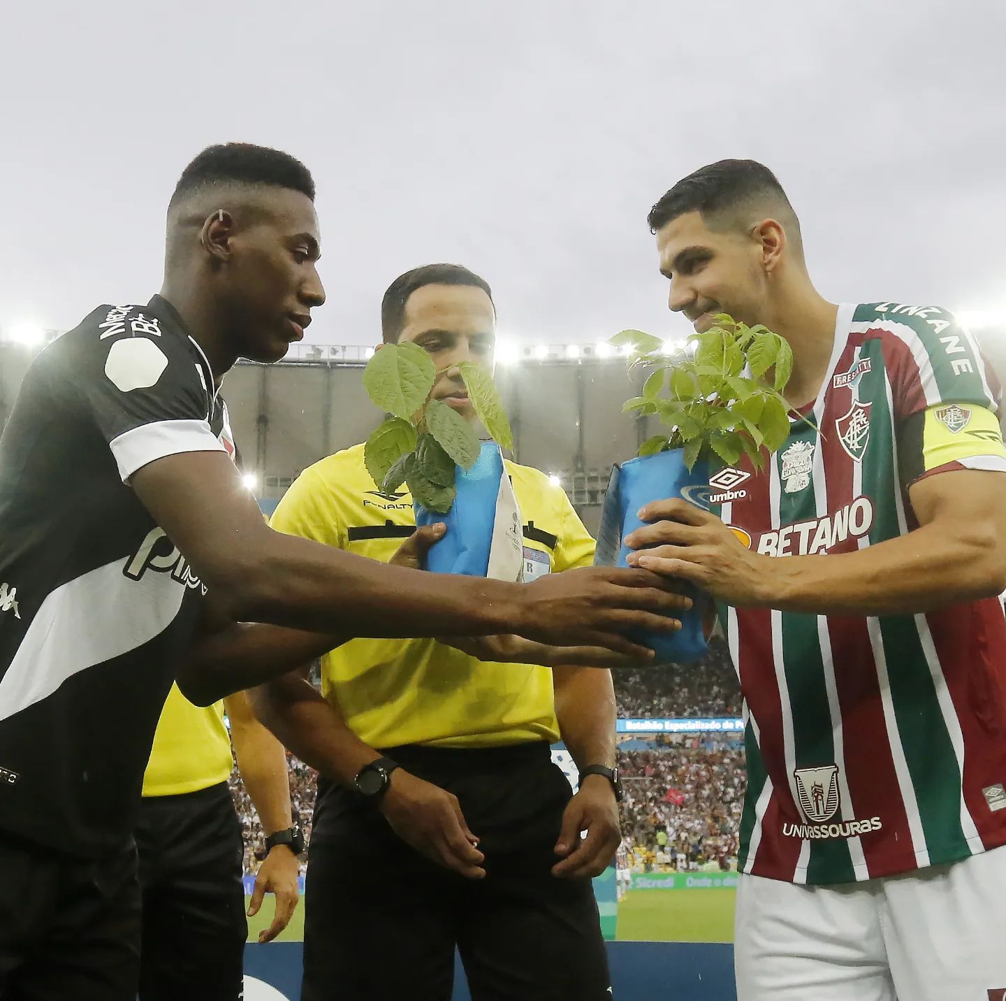 Antes do clássico Fluminense e Vasco, na tarde deste domingo (12/02), no Maracanã, pela oitava rodada da Taça Guanabara, Nino, capitão tricolor, e Léo Pelé, capitão vascaíno, trocaram as mudas de Ipê da campanha "Plantando Gols", que vai gerar 10 mudas de espécies nativas da Mata Atlântica plantadas a cada gol marcado no Campeonato Carioca Betnacional.