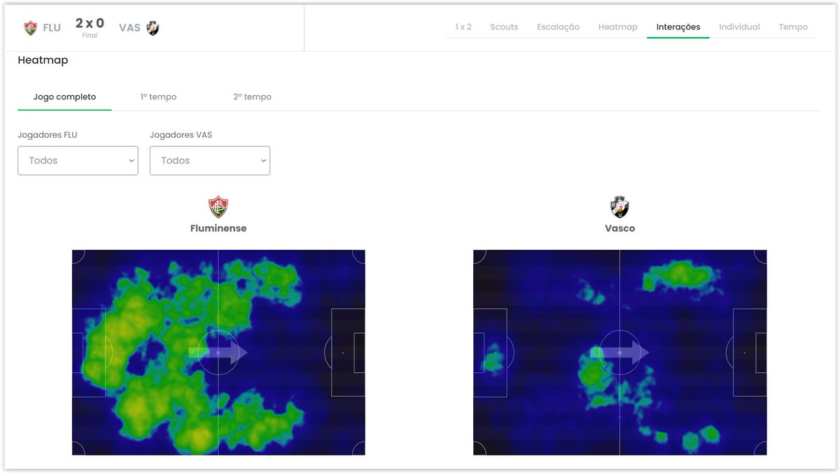 Veja o mapa de calor de Fluminense 2 x 0 Vasco