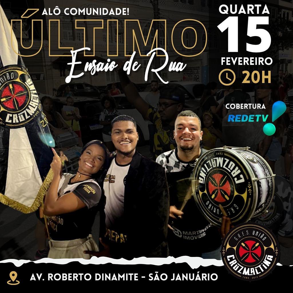 08/02/23 - União Cruzmaltina faz ensaio de rua nesta 5ª-feira às 20h na Avenida Roberto Dinamite