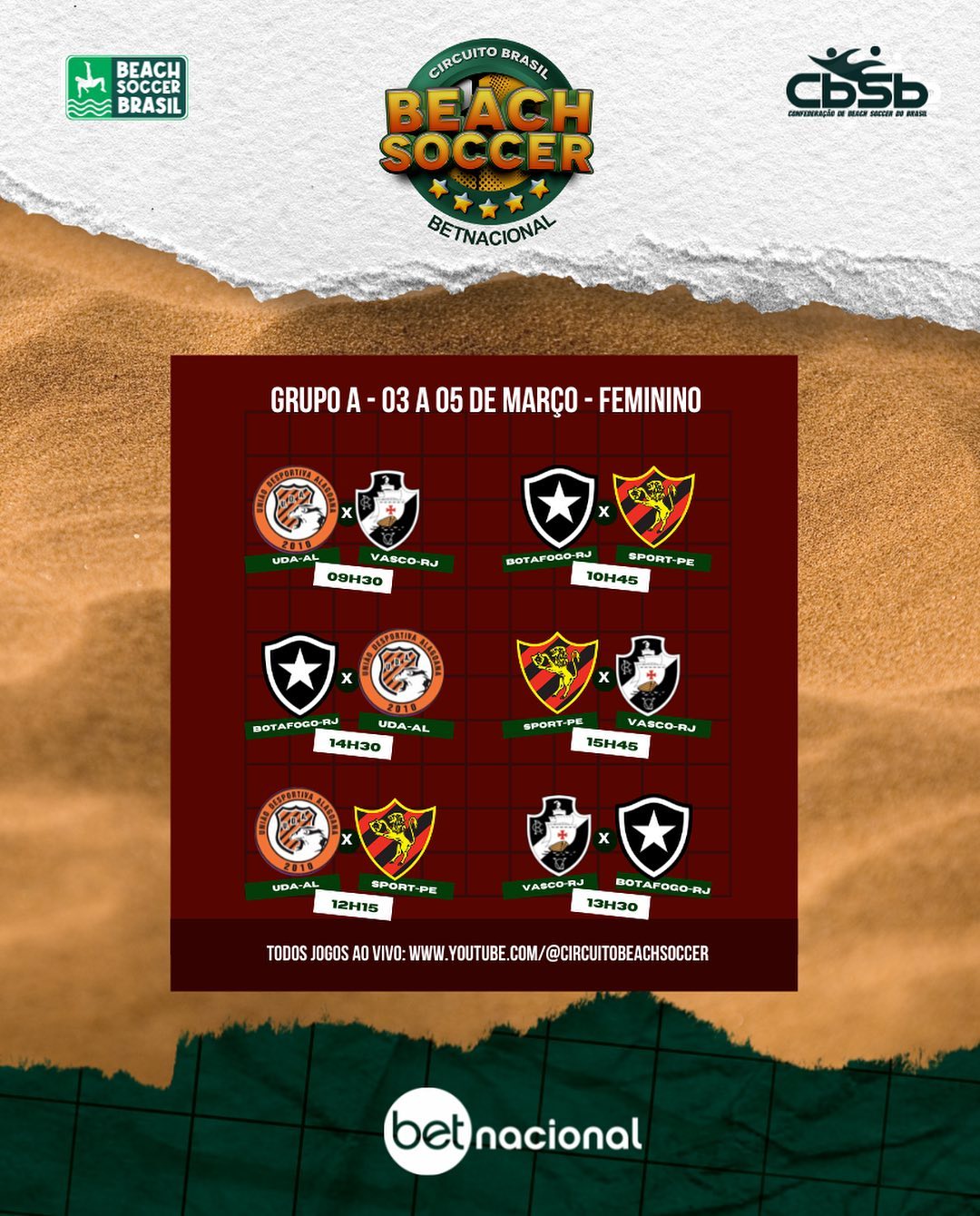 Beach Soccer Feminino: Vasco estreia no Circuito Brasil no dia 03/03 contra a UDA-AL; veja a tabela
