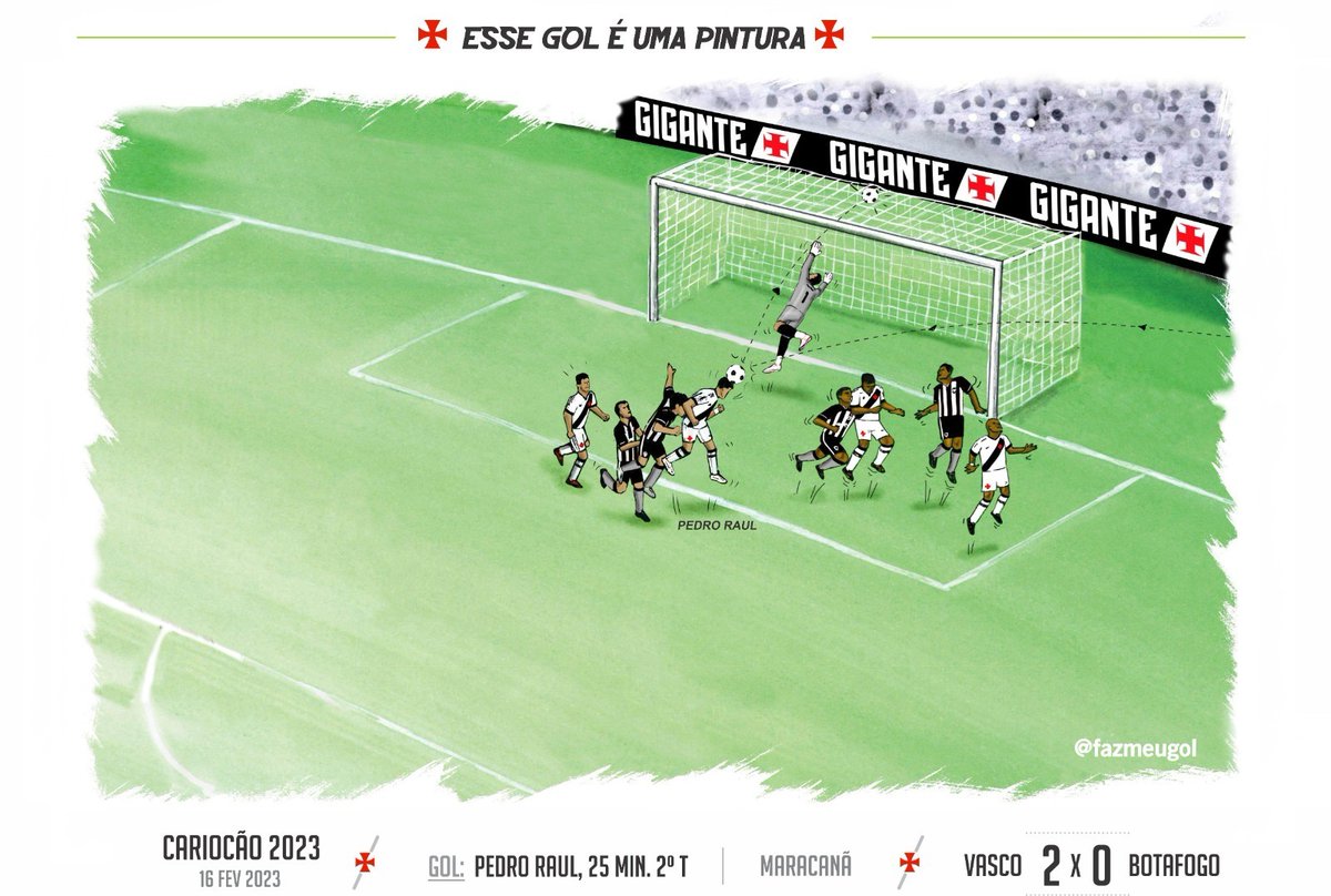 Vasco publica ilustração do gol de Pedro Raul contra o Botafogo; veja