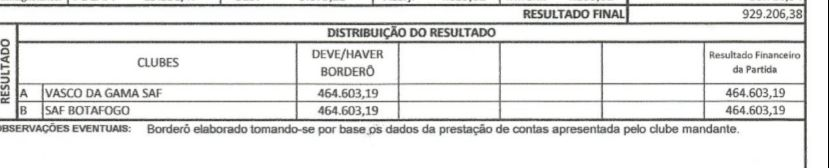 Além da vitória, Vasco encheu o bolso no clássico contra o Botafogo. O Cruzmaltino levou R$ 464.603,19 da renda líquida da partida. O valor de R$ 200 mil do aluguel do Maracanã já foi descontado sobre a renda bruta.
