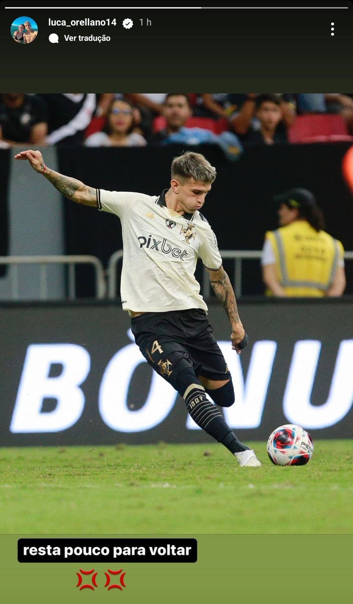 📲 | Luca Orellano em seu Instagram: 'Resta pouco para voltar'. 🙏🏽