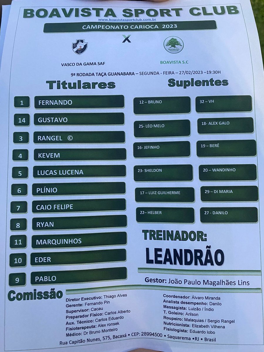 O Boavista também está escalado para encarar o Vasco, em São Januário #lanceCOLINA