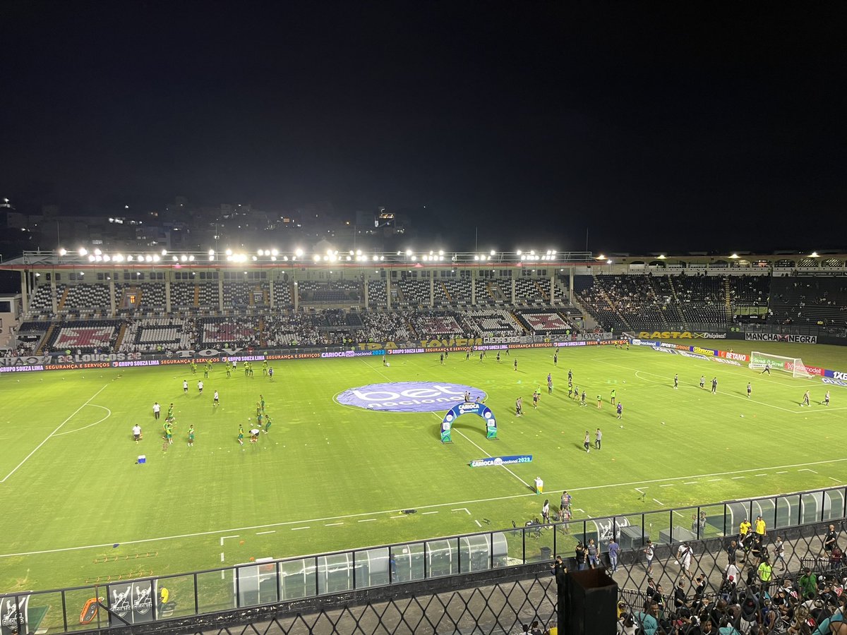 Jogadores de Vasco e Boavista se aquecem no gramado de São Januário; veja foto