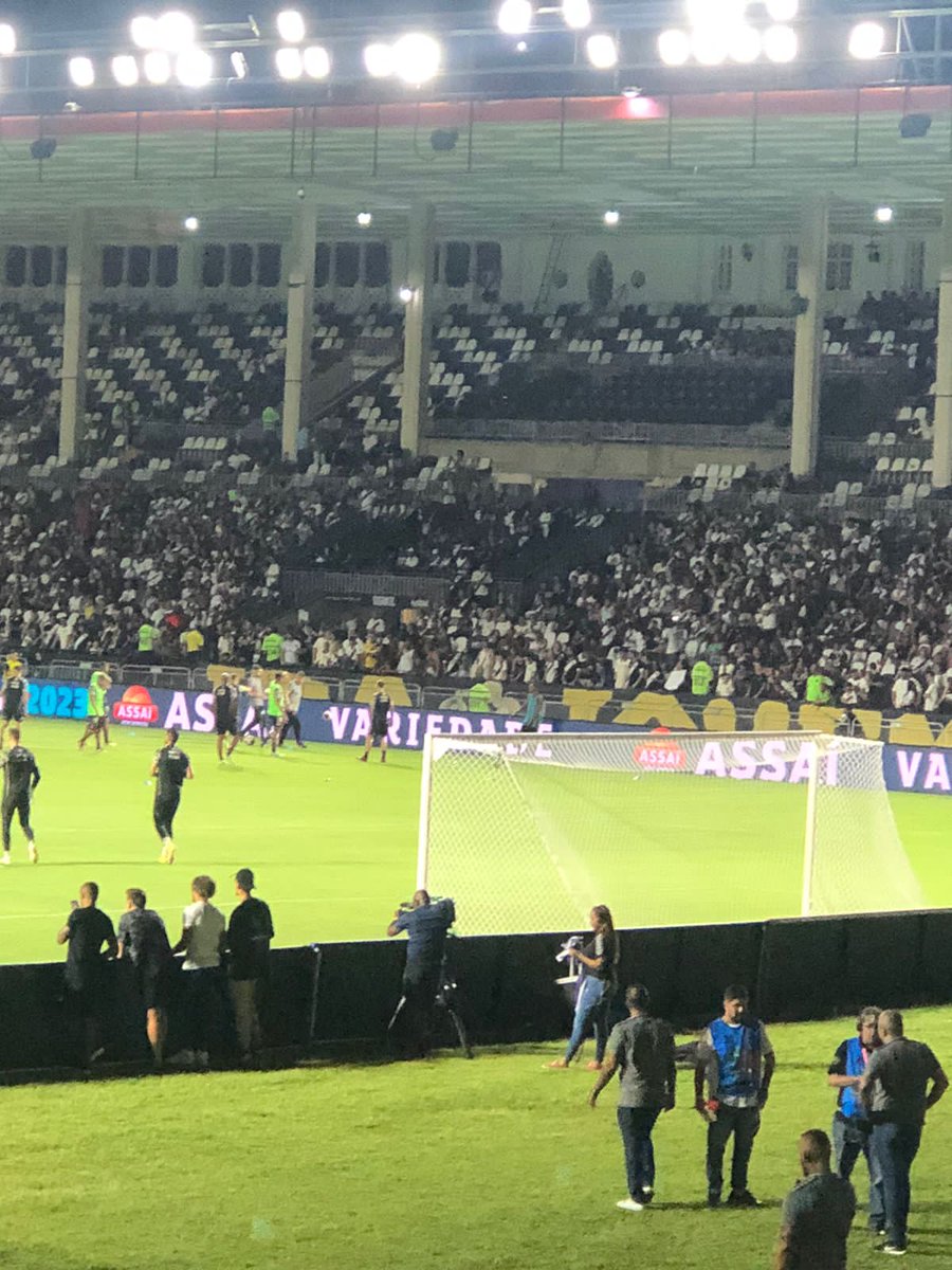 Marlon Gomes, Figueiredo e Capasso assistindo o aquecimento do Vasco.