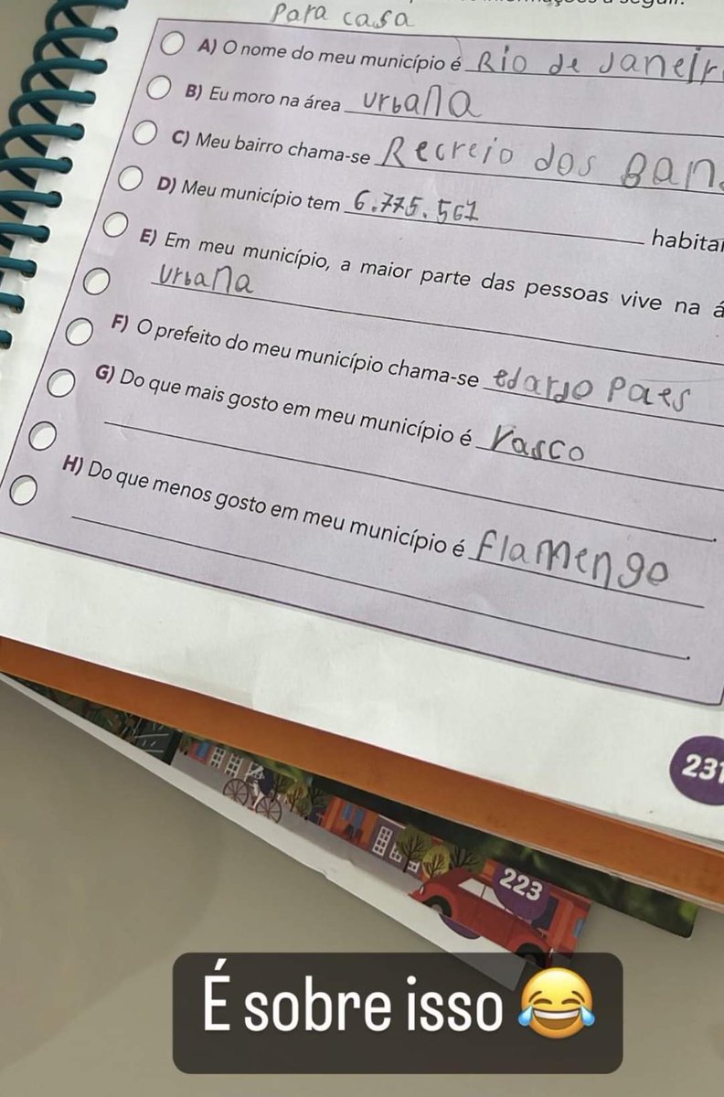 Foto de lição de casa do filho de Anderson Conceição exaltando o Vasco e zoando o Urubu viraliza; veja