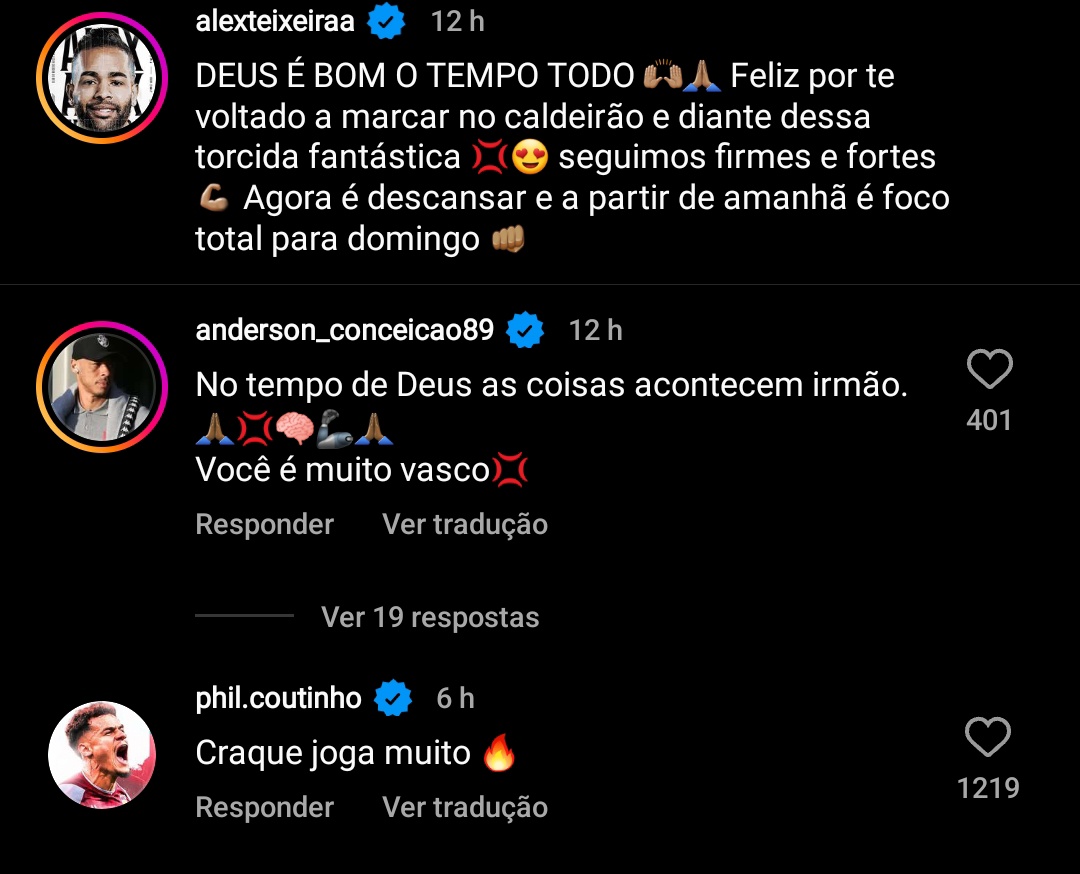 Philippe Coutinho comenta em publicação de Alex Teixeira: 'Craque joga muito'