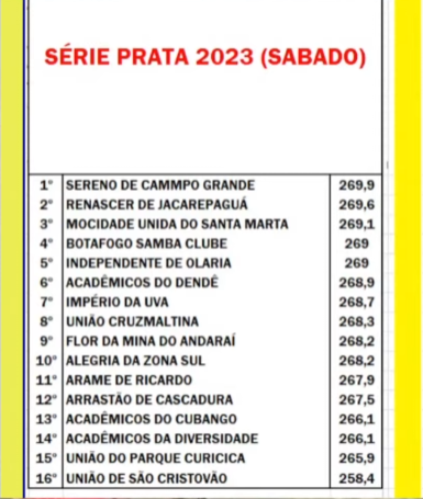 União de Maricá e Sereno de Campo Grande, campeãs respectivamente da sexta e do sábado, vão desfilar na Série Ouro, na Marquês de Sapucaí em 2024.