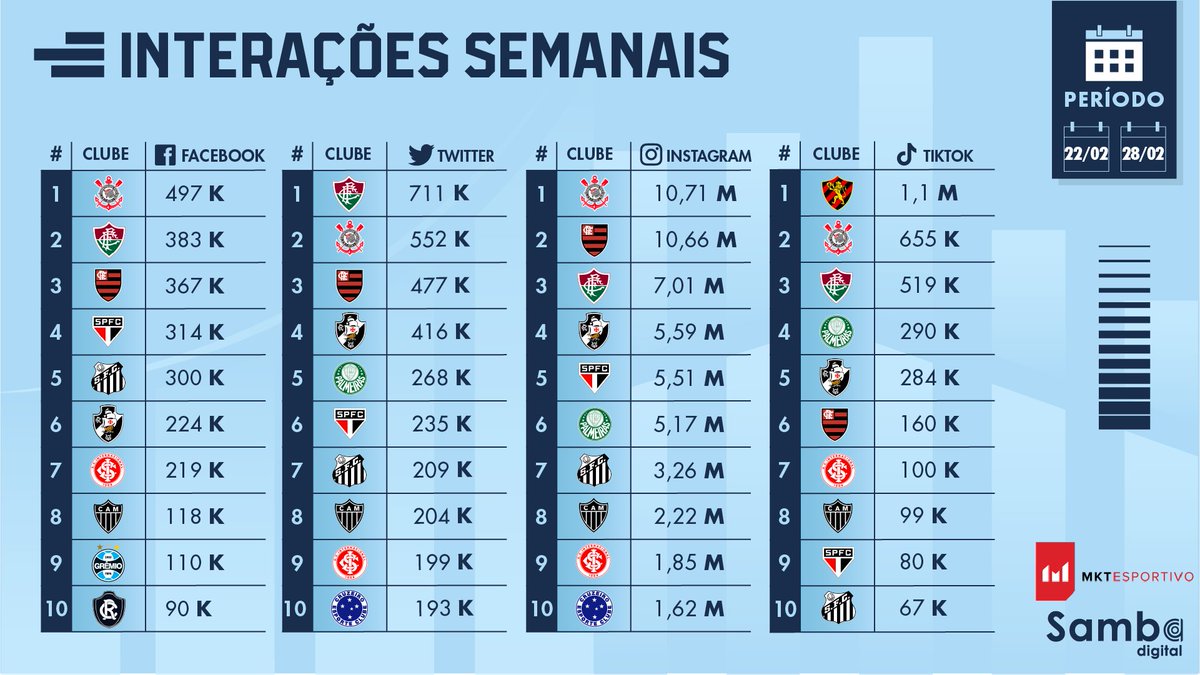 Vasco figura no top 10 de clubes brasileiros de interações semanais nas redes sociais; veja