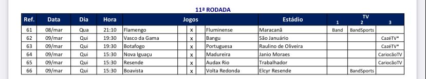 A Ferj confirmou na manhã deste sábado as datas e horários da última rodada da Taça Guanabara, o primeiro turno do Campeonato Carioca. O clássico Flamengo x Fluminense será realizado na quarta-feira (08), às 21h10, no Maracanã. Vasco e Botafogo entram em campo no dia seguinte.