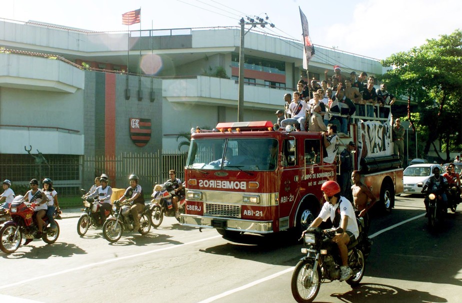 O destino era São Januário, mas a carreata sofreu um desvio na rota. O caminhão foi para o outro lado e fez questão de passar bem em frente à sede do Flamengo, na Gávea.