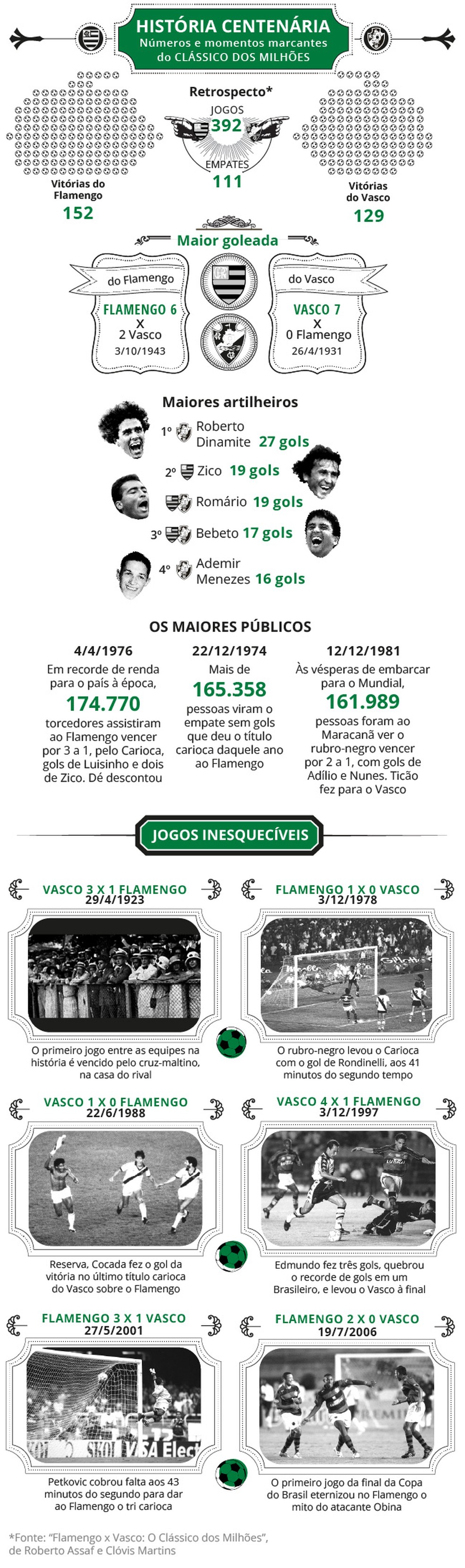Confira episódios marcantes da rivalidade entre Vasco e Urubu; clássico no futebol completa 100 anos em 2023
