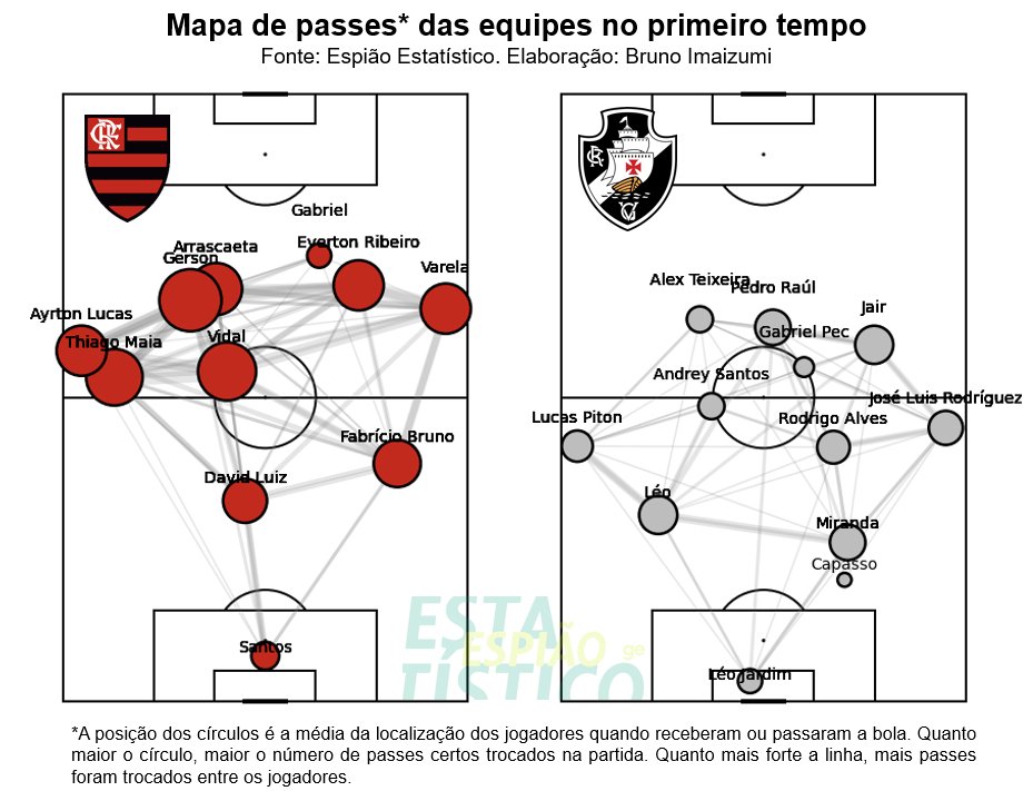 Flamengo trocando passes com oito de dez jogadores de linha no campo do Vasco