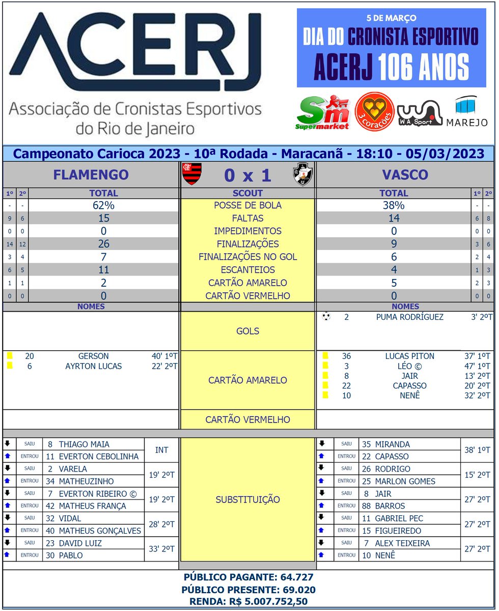 Cartão amarelo: Lucas Piton, Léo, Jair, Capasso e Nenê (Vasco) e Gerson e Ayrton Lucas (Flamengo)
