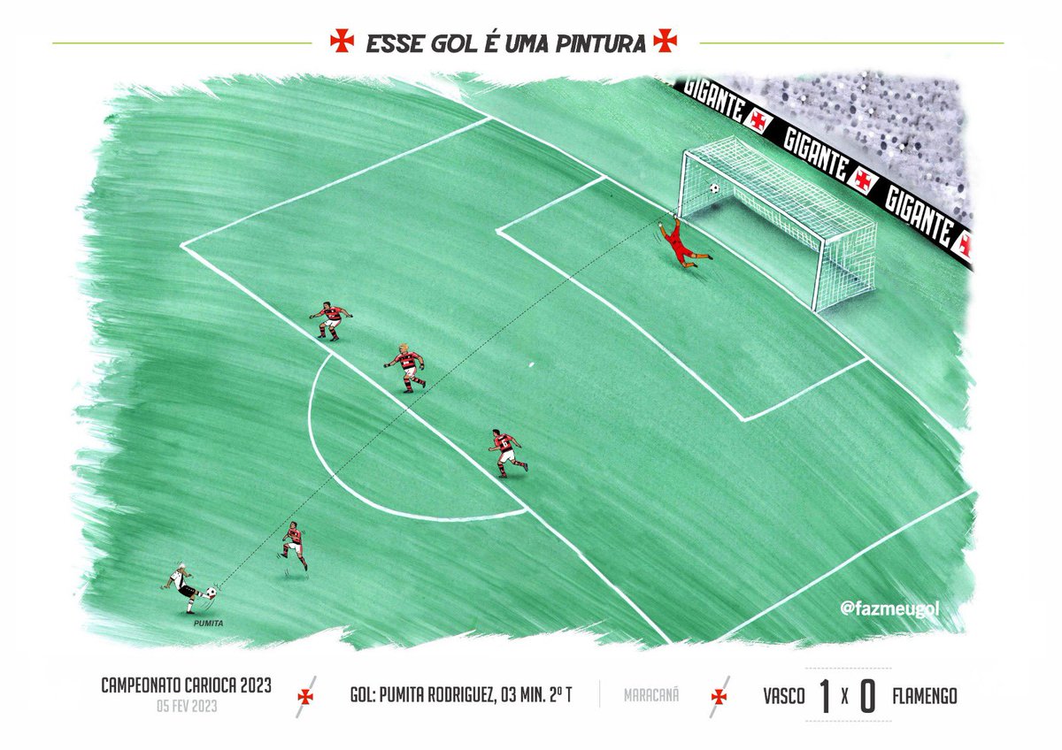 Vasco publica ilustração do gol de Puma Rodríguez contra o Urubu; veja