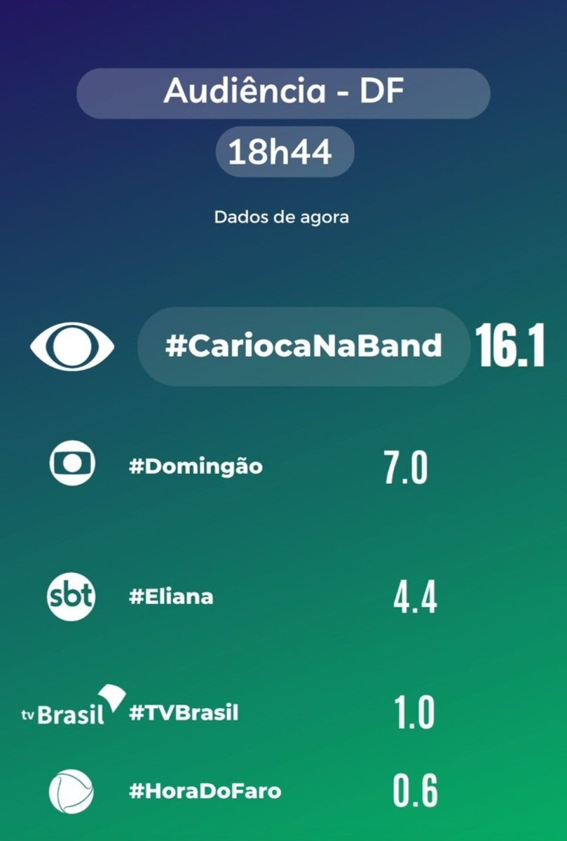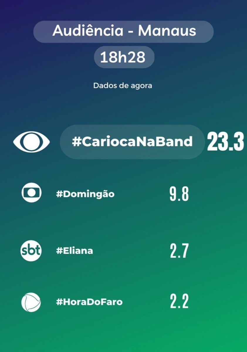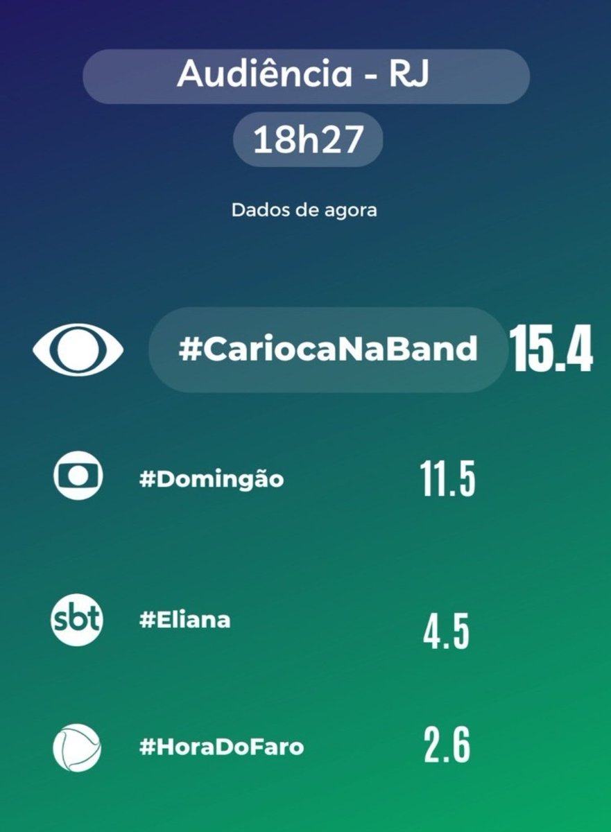 É a primeira vez em 15 anos que a Band fica em primeiro lugar. Em segundo, a Globo marcou 12,3 pontos, seguida de SBT (3,9), Record (2,9) e Rede TV (1,1).