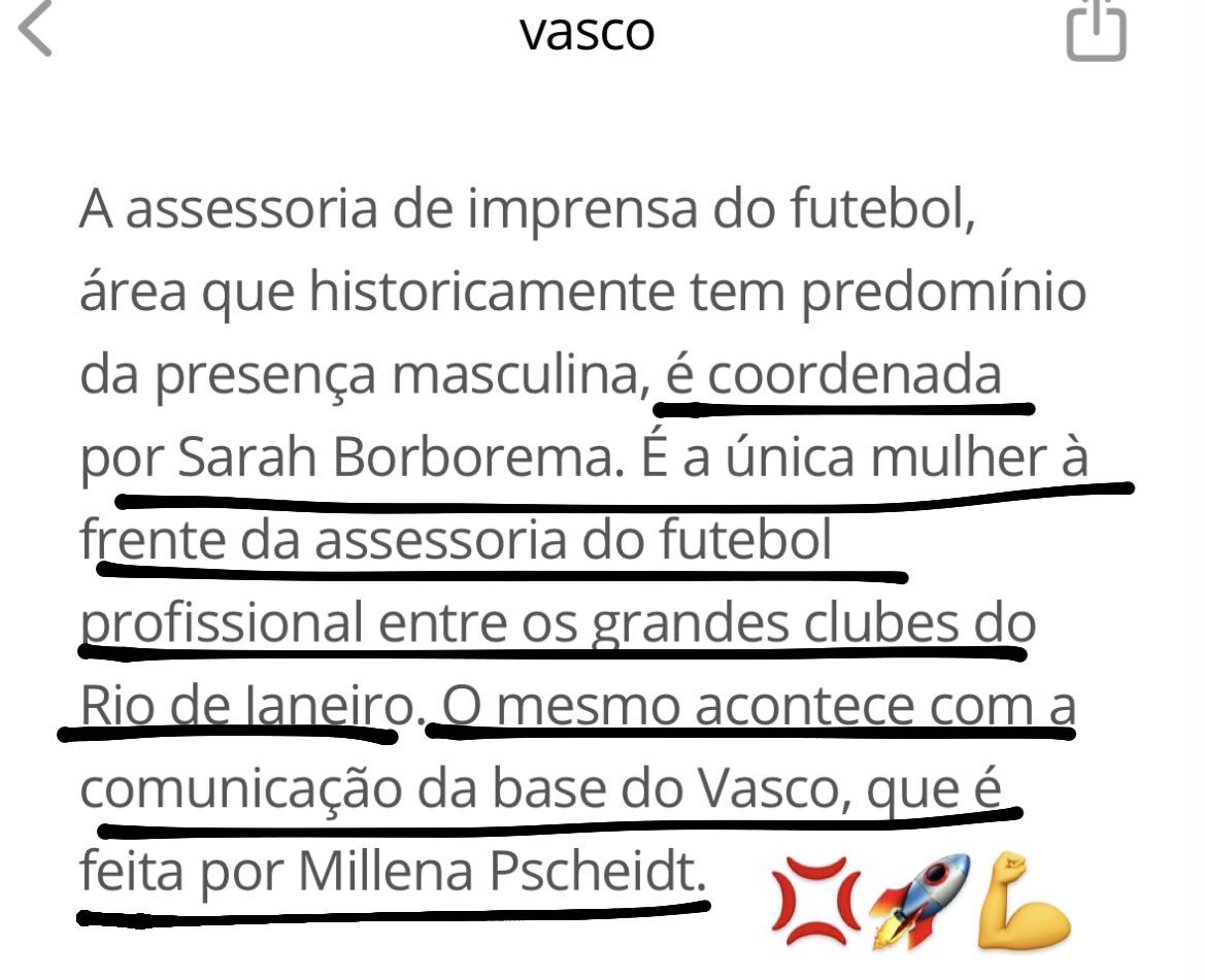 Fonte: Twitter da jornalista Millena Pscheidt/Assessoria de imprensa do Vasco