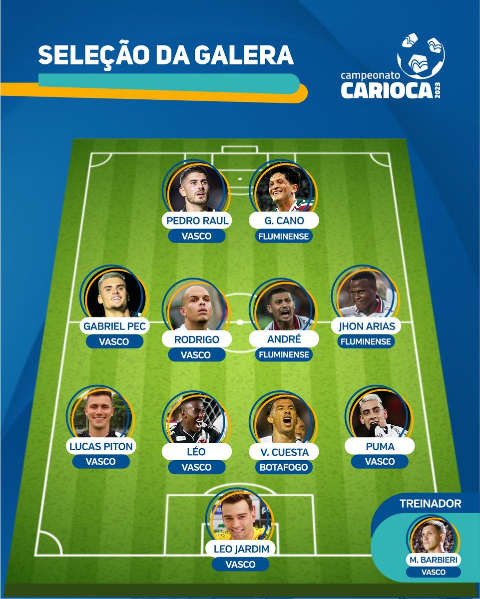 Com presença de @Botafogo, @FluminenseFC e @VascodaGama, assim ficou o onze ideal da primeira fase eleito por vocês!